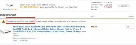 一般显示In Stock表明产品库存数量至少有20个以上,如果需要进一步了解更详细,可加入购物车,随机输入一个比较大的数字,以便Amazon提示精确的数字,如图: