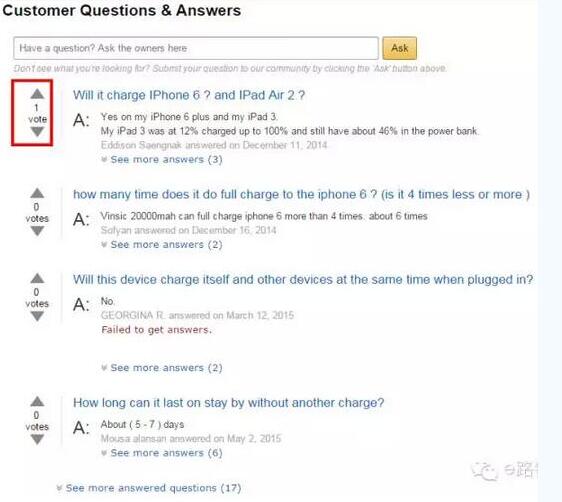 另外补充一点,如果人员充足,可去阅读几个竞争对手的同类产品的一二星review,仔细琢磨,必有收获。Answered Questions功能通常来讲,功能性比较强的产品,可能会有很多买家提出问题,而设计型的产品相对会比较少。问题提问的越多,有几种情况,listing页面本身的描述做得不仔细。产品本身比较复杂。很多潜在顾客钟爱这个产品。另外,vote的数字越多,说明此问题的重要性。