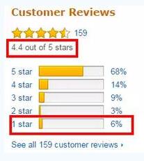 对于此案例,380这个数量算是比较大的,本身货值也是不低的,这反映他们的销量一直比较稳定以及卖家对这个listing的信心。Review质量与数量众所周知,review数量十分重要,但事实上,质量才是王道。此案例的listing从2014年10月份开始上线,现在review数量为159,在这个品类,算是不错的数字了。而更重要的是星级分数为4.4,很不错的数字。个人认为,合格线是4.3分, 理想是4.6-4.9分。分数的影响主要是一二星的占比。以下3%和6%的比例,是合格的。一二星加起来的比例最好低于10%才比较健康。