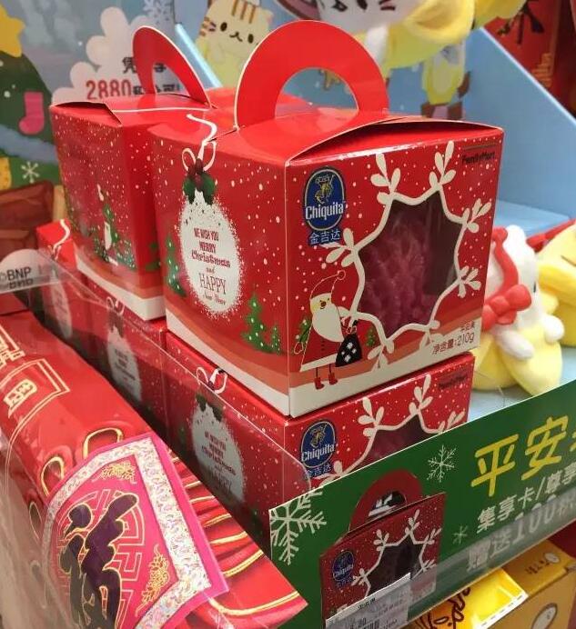 在12月初,上海圣诞主题的产品,金吉达平安果就出现在全家便利店中。210g平安果单价是¥8.8(会员折扣1元)。