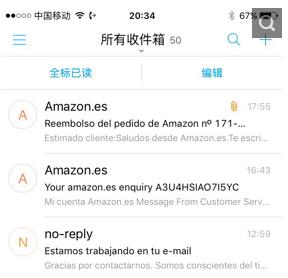 随即收到了西亚的邮件,因为通篇西班牙文没有细看,大致意思无非是我们已收到你的邮件,客服人员将尽快受理并答复诸如此类。晚上再次查看邮件,发现16:43、17:55西亚又发送了两封邮件。
