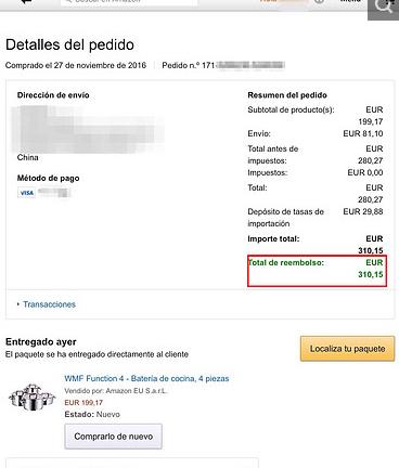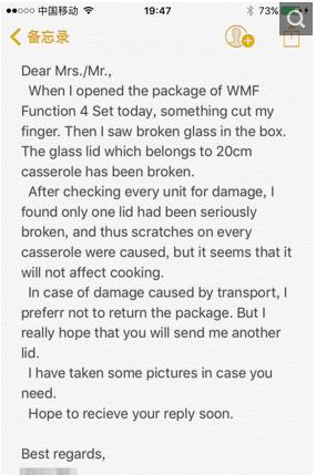 网友分享,对比后在西班牙亚马逊下单购买WMF Function 4汤锅,产品破损怎么申诉呢?ps,不会西班牙语。