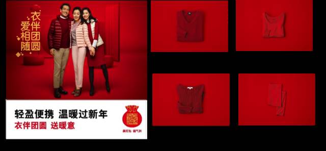 “红”字当头,上新红色系列、AR红包、店铺新年装,优衣库牢牢抓住了国人春节穿红迎新的喜好。
