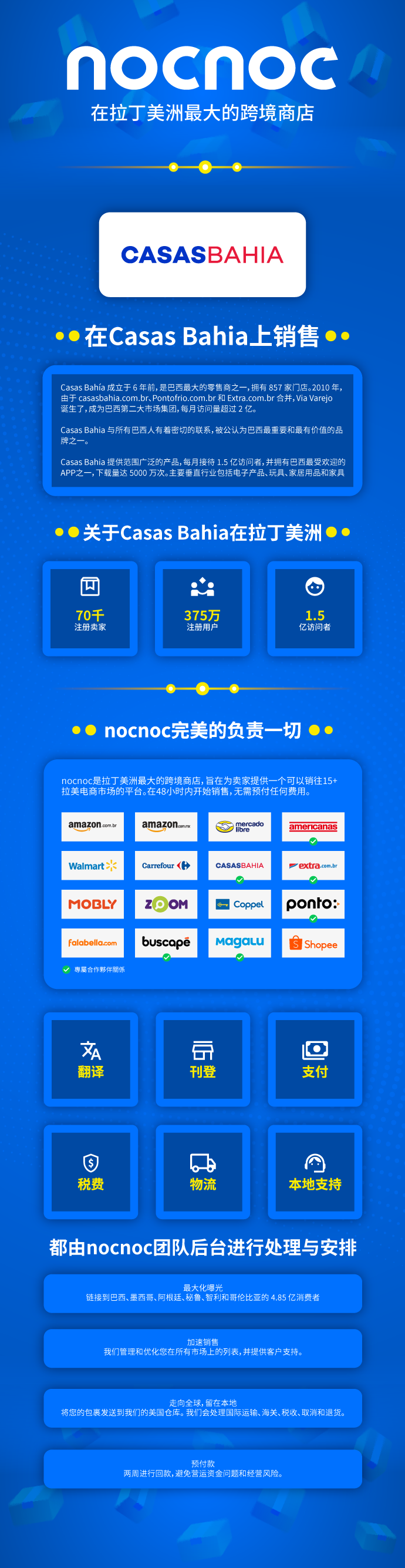 亮点 支持翻译,营销,物流,清关等服务免费专属平台经理平台负责回复买家咨询最大程度减少退换货负责本地化营销活动