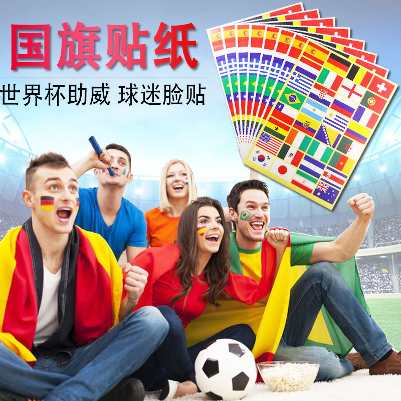 32强国旗贴纸球迷助威脸贴方形贴纸