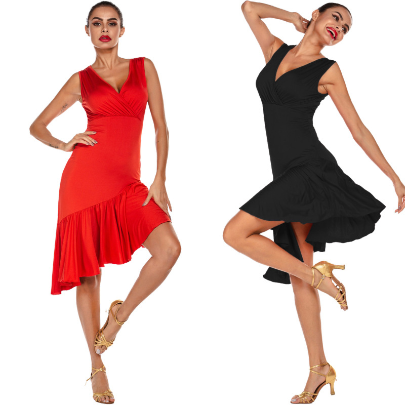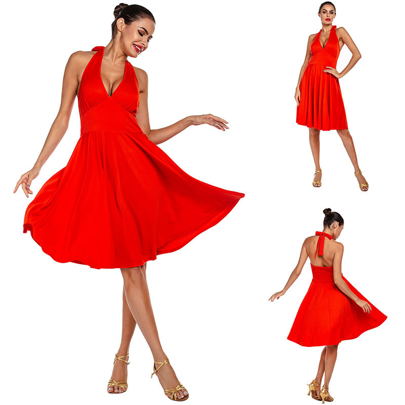 跨境舞蹈服热卖新款亚马逊连衣裙交谊舞大裙摆
