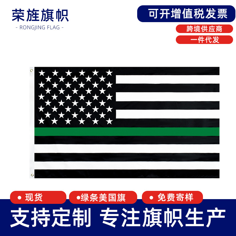绿条美国星条警察旗thin green
