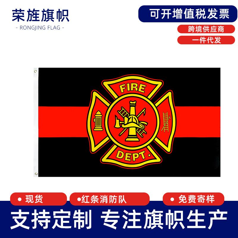 红条消防队旗帜Red
