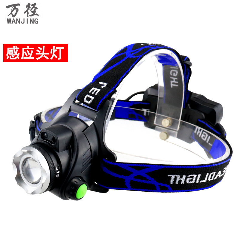 强光远射感应头灯户外夜钓照明充电T6头戴式伸缩变焦
