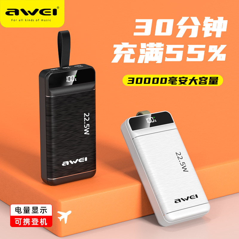 AWEI用维便携挂绳3万大毫安充电宝 跨境 22.5W快充移动电源现货
